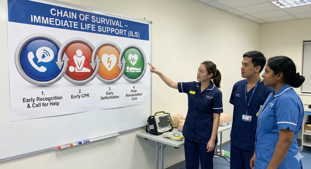 Immediate Life Support (ILS) is a core clinical skill set designed to help healthcare professionals recognise and manage cardiac arrest