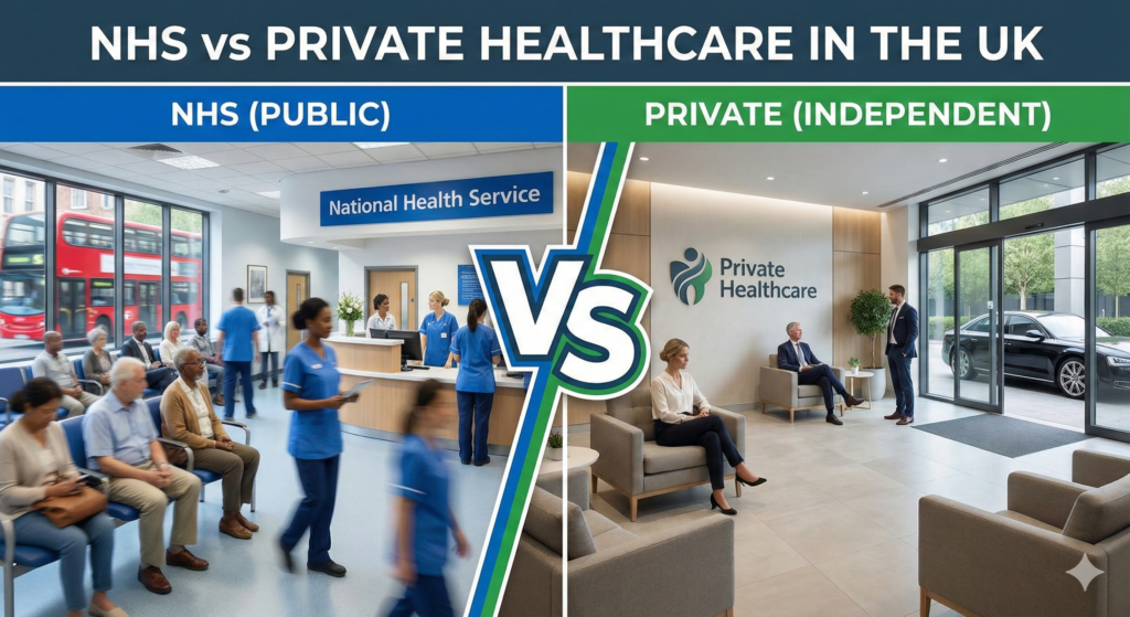 Healthcare in the UK is delivered through a mixed system: the publicly funded National Health Service (NHS) and a growing